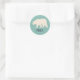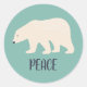 Seal your Christmas Cards in style with these round stickers that make great envelope seals. They feature a simple style illustration of a polar bear in cream or ivory white against a frosty light teal background with "Peace" or your own message spelled out in fun navy blue lettering.