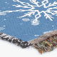 A quality printed throw has its advantages. This is a much finer weave throw than its loopier cousins, and though lighter, it is worth the investment for custom room accessorizing. The back is much prettier than the typical brown, and the fringe on the long sides very vivid, the selvage nicely done. Before photographing, I washed the throw in cold water, delicate, with a thicker woven throw the same size. On tumble dry low, this throw was dry in half the time as the other. This is a very practical quality if you use throws for furniture covers or to wrap up in frequently. The sleekness of the fabric makes it a great layer for accenting or protecting without the feeling of sitting on too much stuff. Perfect for napping or when you feel a light chill coming on. The color printing is beautiful and on this fabric, matched the design and color of my Photoshop image. This is an advantage for blending room fabrics and colors. The fringe on the short sides prints the colors from the design image and therefore varies from the side fringe. I streaked a white fractal line through the plaid pattern to give the illusion of weaving. This printed as crisp as an illusory thread, and put some white in the short side fringe, showing another advantage of print vs loomed- for artistic purposes, line lines, detail, and color integrity can be planned and preserved. My loomed throws have color limitations and more of a needlepoint texture. Print throws reproduce an exact image. The throw felt a little stiff straight out of the package, but this went away in the first delicate wash. Of course I searched the wash water for ink or bleeding and there was none.