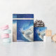 Gift wrapping paper featuring Polar Bear Snowflakes by wildlife and fantasy artist Michaeline McDonald of a smiling polar bear with a snowflake on his nose.