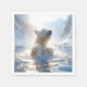 A polar bear joyfully splashes in icy water, surrounded by sunlight and snow-covered mountains