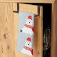 Cute polar bear with red hat and scarf on light grey background with snowflakes