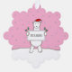 This beautiful illustration by Helen McCartney Designs shows a fluffy polar bear wearing a Christmas hat. The bear is holding a banner with a name of your choice.