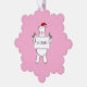 This beautiful illustration by Helen McCartney Designs shows a fluffy polar bear wearing a Christmas hat. The bear is holding a banner with a name of your choice.