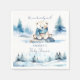 Polar bear arctic winter we can bearly wait baby shower tableware personalised template napkins, watercolor cute polar teddy bear wearing a blue scarf sitting on ice rock snowy pines winter themed baby shower welcome sign personalised baby shower napkins