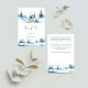 Polar bear arctic winter we can bearly wait baby shower thank you card, watercolor cute polar teddy bear wearing a blue scarf sitting on ice rock snowy pines winter themed baby shower thank you card