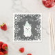 Neutral baby shower napkins featuring an illustration of a baby polar bear wearing a green hat and scarf over a chalkboard inspired background surrounded by snowflakes. Personalise the name.