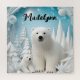 This beautifully illustrated polar bear jigsaw puzzle features a serene winter landscape with a mother and baby polar bear, making it a charming and heartwarming design. The frosty blues and icy white tones create a peaceful scene, perfect for nature lovers, wildlife enthusiasts, and kids who adore animals. Personalise it with a name to create a unique keepsake or special holiday gift. Ideal for birthdays, Christmas, or cosy winter nights spent with family.