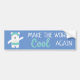 This bumper sticker features a white polar bear with light blue swim ring and cap to raise awareness about climate change to make the world cool again.