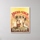 Vintage advertisement of a scene at the North Pole where polar bears are enjoying mugs of lager beer, with a trompe-l'oeil effect showing overheated people, with fans and sunshades, and one man reaching into the scene for a frosty fresh and cold mug of lager beer offered to him by a polar bear.