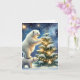Celebrate the warmth and wonder of the holiday season with this enchanting Christmas card featuring two playful polar bears climbing a snow-covered evergreen tree, adorned with glowing star-shaped fairy lights under a starry night sky. This beautiful watercolor illustration captures the magic of Christmas, making it a perfect card to share joy, love, and festive cheer with friends and family.