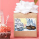 A beautiful and colourful engraving, circa 1860, of Polar Bears, Walrus, and seals on Arctic ice, with the sun low on the horizon in the background.