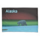A polar bear roams the ice during the long polar night; the Northern Lights in red and green glow in the distance. Text reading "Alaska" in glowing blue and white also appears.