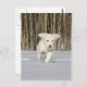 Puppy or polar bear cub? Adorable golden retriever pup playing in the snow with it's light coloured coat seeming almost white.