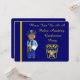 This Police Academy Graduation Party Invitation is decorated on the front with a Policeman's Patch, toy Policeman, and the words "Please Join Us At a Police Academy Graduation Party." The back is decorated with toy Police Officers.