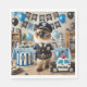 Celebrate your special day with these fun and festive police-themed birthday napkins featuring an adorable Siamese cat in a police officer uniform! Complete with a badge, cap, and playful expression, this design adds a touch of whimsy to your birthday party. The vibrant blue and black colours, along with police badge symbols and confetti, make these napkins perfect for any police-themed birthday celebration. Make your party memorable with these unique napkins that will surely delight your guests!