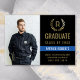 Send your family and friends a unique personalised law enforcement photo college graduation card to wow them. This template design features your custom photo on the left and to the right a faux gold laurel wreath with your monogrammed initial. Below is your graduation details. Your name in white on a blue stripe and details in faux gold on a black background. Designed by Susan Coffey.