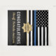 This design features a police force flag with black and white stripes, and a thin blue line stripe as well. Customise with the name of the retiring or graduating law enforcement officer, sheriff, captain, or chief. A great way to say congratulations to the new retiree or graduate for their retirement or graduation from police academy.