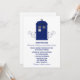 Quirky and fun Police Box Wedding Invitation featuring a brilliant blue vintage police box flanked by swirl flourishes and blue stars. Easy to customise, simply add the details of your wedding in the text fields provided. Click "Customise It" to find more personalisation options.