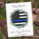 Send Merry Christmas greetings to friends and family with this Unique Thin Blue Line Police Christmas Card - Holiday wreath in a USA American flag design in Police Flag colours, modern black blue and white design with holly and berries. Personalise with family name. This police Christmas card is perfect for police families or police department christmas cards. COPYRIGHT © 2022 Judy Burrows, Black Dog Art - All Rights Reserved. Police Christmas Wreath Blue Budget Holiday Card