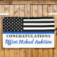 Add the finishing touch to your police retirement or graduation party with these thin blue line police graduation banners and party supplies. USA American flag design in Police Flag colours, distressed design. This police officer graduation collection will be a favourite. See our thin blue line collection for matching law enforcement graduation invitations, police gifts, party favours, and supplies. COPYRIGHT © 2020 Judy Burrows, Black Dog Art - All Rights Reserved. Police Congratulations Retirement Graduation Party Banner