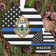 Thin Blue Line Police Department Christmas Ornament - American flag in Police Flag colours, modern black and blue design . Customise with your department logo, and personalise with police officers name. This personalised law enforcement ornament is perfect for police departments and law enforcement officers, stocking stuffers and christmas gifts to your police officers. Order these police ornaments bulk wholesale for the police academy or police department gifts, police christmas stocking stuffers. COPYRIGHT © 2020 Judy Burrows, Black Dog Art - All Rights Reserved. Police Department Custom Logo Name Law Enforcement Ornament
