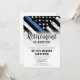 This design features a police force flag with black and white stripes, and a thin blue line stripe as well. "Retirement Celebration" sits above all of the party details for the retiring law enforcement officer, sheriff, captain, or chiefs retirement celebration.
