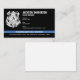 This design features a police force flag theme with a thin blue line stripe. Customise with the name, position, and contact information of the law enforcement officer, sheriff, captain, chief or any employee working at the police department. The solid white background on the back allows an extra space for an officer to write a small note if needed.
