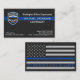 Thin Blue Line Police Business Cards - Police Department custom logo, thin blue line on a modern black faux leather design.