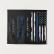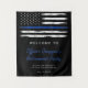 This retirement party welcome tapestry features a distressed police thin blue line flag, black background and fully editable wording. Easily use to celebrate your favourite officer's retirement, a new police academy graduation, or any other police related event.