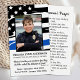 Thin Blue Line Police Memorial Prayer Card in a modern American flag design in police flag colours. Personalise this police memorial prayer card with your police officer's photo, department, name & dates. Perfect for police departments to honour a fallen officer, and law enforcement funeral memorial keepsakes. Front Quote "Blessed are the peacemakers: for they shall be called children of God." Matthew 5:9 ~ Back quote " A Policeman's Prayers" Please reach out if you would like a custom prayer. COPYRIGHT © 2020 Judy Burrows, Black Dog Art - All Rights Reserved. Police Memorial Law Enforcement Funeral Prayr Card