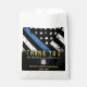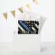 This design features a police flag with black and white stripes, and a thin blue line stripe as well. This thank you favour bag is great for showing appreciation to your guests for a retiring or graduating police officer, sheriff, captain, or chief.