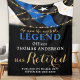 The Man The Myth The Legend has Retired! Thin Blue Line Police Retirement Blanket - USA American flag design in Police Flag colours, modern design . This personalised police blanket is perfect to celebrate your retired law enforcement officer, police retirement party gifts , law enforcement retirement party. Personalise these police retirement blanket with police officers rank, name, police department and retirement date.