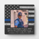 Honour your beloved police officer and with this Thin Blue Line Police Memorial Photo plaque. Personalise with your officer's photo, name & badge number, and dates . Quote: Well done, thou good and faithful servant. Matthew 25:23 . COPYRIGHT © 2020 Judy Burrows, Black Dog Art - All Rights Reserved. Police Memorial Thin Blue Line plaque