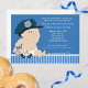 A cute baby in a cop hat with a toy police car makes the perfect baby shower invitations for police and their expectant families.