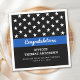 Add the finishing touch to your police retirement or graduation party with these thin blue line modern police party napkins and party supplies. USA American flag design in Police Flag colours, modern black blue white design design. This police officer graduation collection will be a favourite. See our thin blue line collection for matching police retirement invitations, police gifts, party favours, and supplies. COPYRIGHT © 2020 Judy Burrows, Black Dog Art - All Rights Reserved. Police Officer Graduation Thin Blue Line Party Napkins