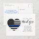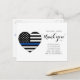 Thin Blue Line Thank You Card - American flag in Police Flag colours, modern black blue design on white. Show your appreciation to an outstanding police officer or law enforcement officer with this thin blue line thank you, perfect for police appreciation, police officers, and police departments. Quote "Two small words Thank You seem so small in comparison to all you do, but they come form the deepest part of our hearts." COPYRIGHT © 2020 Judy Burrows, Black Dog Art - All Rights Reserved. Police Officer Heart Law Enforcement Thank You Postcard