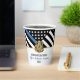 This design features a police force flag with black and white stripes, and a thin blue line stripe as well. A great way to say congratulations to the new police academy graduate. Customise with the name of the graduating law enforcement officer in gold. Celebrate this milestone in style!