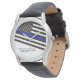 * Men's Classic Black Leather Strap Watch Police Thin Blue Line Flag Timepiece. The flag is on a diagonal. *