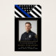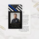Honor a brave and dedicated police officer with this elegant memorial prayer card featuring a dignified thin blue line flag design and a personalized photo tribute. The front showcases their picture framed in black and gold with the heartfelt sentiment IN LOVING MEMORY. The back includes a comforting prayer to support family and friends as they remember an officer who served with courage, honor and unwavering commitment. A meaningful keepsake for a police funeral, memorial service or Celebration of Life, this prayer card offers a lasting tribute to their service and sacrifice. Its small and portable size of 3.5x2" (wallet-sized) makes it convenient for loved ones to carry it with them as a reminder of your loved one’s life and spirit.
