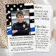 Thin Blue Line Police Memorial Prayer Card in a modern American flag design in police flag colours. Personalise this police memorial prayer card with your police officer's photo, department, name & dates. Perfect for police departments to honour a fallen officer, and law enforcement memorial keepsakes. Front Quote "Blessed are the peacemakers: for they shall be called children of God." Matthew 5:9 ~ Back quote "A Hero is...someone who has given his or her life to something greater than oneself." and Prayer "We Hold You Close." Please reach out if you would like a custom prayer. COPYRIGHT © 2020 Judy Burrows, Black Dog Art - All Rights Reserved. Police Officer Memorial Funeral Prayer Card