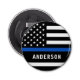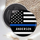 Personalised Thin Blue Line bottle opener - American flag in Police Flag colours, modern black blue design . Personalise with Officer's name, or department. This personalised police bottle opener is perfect for police departments, or as a memorial keepsake. COPYRIGHT © 2020 Judy Burrows, Black Dog Art - All Rights Reserved. Police Officer Personalised Modern Thin Blue Line bottle opener