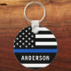 Police Officer Personalised Modern Thin Blue Line Key Ring