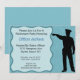 Unique retirement invitation for a police officer. Design has an officer pointing to the words of the invitation. Easy to customise with your party details.