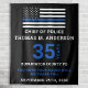 Thin Blue Line Police Retirement Tapestry - USA American flag design in Police Flag colours, distressed design . This personalised police tapestry is perfect to celebrate your retired law enforcement officer, police retirement party gifts , law enforcement retirement party. Personalise these police retirement banner with police officers rank, name, badge number, years of service and retirement date, and personal message.