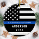 Thin Blue Line Police Officer Christmas Ornament - American flag in Police Flag colours, modern black and blue design . Customise with your department name, and personalise with police officers name and badge number. This personalised law enforcement ornament is perfect for police departments and law enforcement officers, stocking stuffers and christmas gifts to your police officers. Order these police ornaments bulk wholesale for the police academy or police department gifts, police christmas stocking stuffers. COPYRIGHT © 2020 Judy Burrows, Black Dog Art - All Rights Reserved. Police Personalised Thin Blue Line Law Enforcement Ceramic Ornament