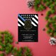 This design features a police force flag with black and white stripes, and a thin blue line stripe as well. The police badge and gold text sits above all of the party details for the retiring law enforcement officer, sheriff, captain, or chiefs retirement party details.