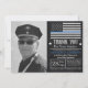 Police RETIREMENT Thank You For Your Service invitation with a faux chalkboard look and blue thin line flag honouring the new graduate or retiree! A great invite to say thank you to the police officer or detective for all their hard work in the academy! Features a faux chalkboard background and flag graphics with faux chalkboard background!