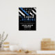 This design features a police force flag with black and white stripes, and a thin blue line stripe as well. "The Legend is Retiring" text sits above all of the party details for the retiring law enforcement officer, sheriff, captain, or chiefs retirement party.