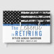 This design features a police force flag with black and white stripes, and a thin blue line stripe as well. "The Legend is Retiring" text sits above the customisable name of the retiring law enforcement officer, sheriff, captain, or chief. Celebrate this milestone in style!