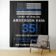 Thin Blue Line Police Retirement Tapestry - USA American flag design in Police Flag colours, distressed design . This personalised police tapestry is perfect to celebrate your retired law enforcement officer, police retirement party gifts , law enforcement retirement party. Personalise these police retirement banner with police officers rank, name, badge number, years of service and retirement date, and personal message.